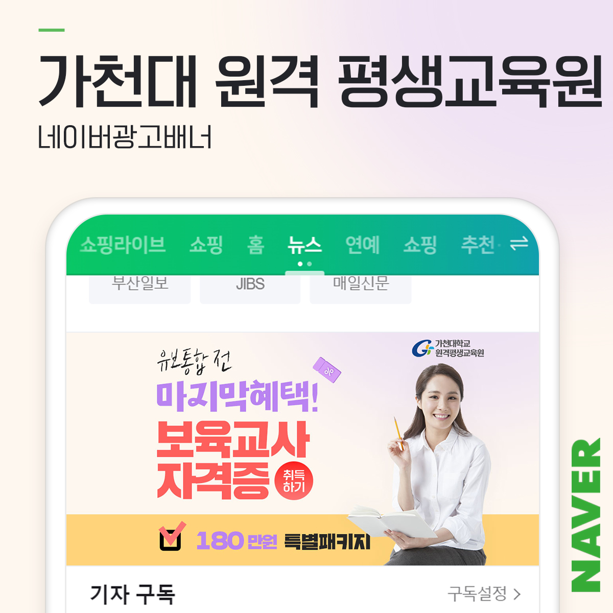 [교육, 학원, 학교] 가천대 원격 평생교육원 네이버광고배너
